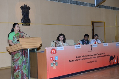 Mrs Vasundhara Raje, Chief Minister, Government of Rajasthan, inaugurated a national conference on Universal Health Coverage (UHC) organized by the WHO Country Office for India in collaboration with the Government of Rajasthan at Jaipur on 20 February 2015.