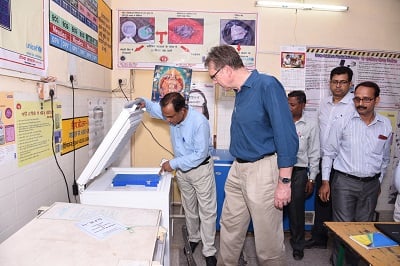 Dr Henk Bekedam at a vaccine cold chain room in a hospital in Lucknow, Uttar PradeshDr Henk Bekedam meeting Yogi Adityanath, Chief Minister of Uttar PradeshDr Henk Bekedam reviewing data at vaccine cold chain room in Lucknow, Uttar Pradesh