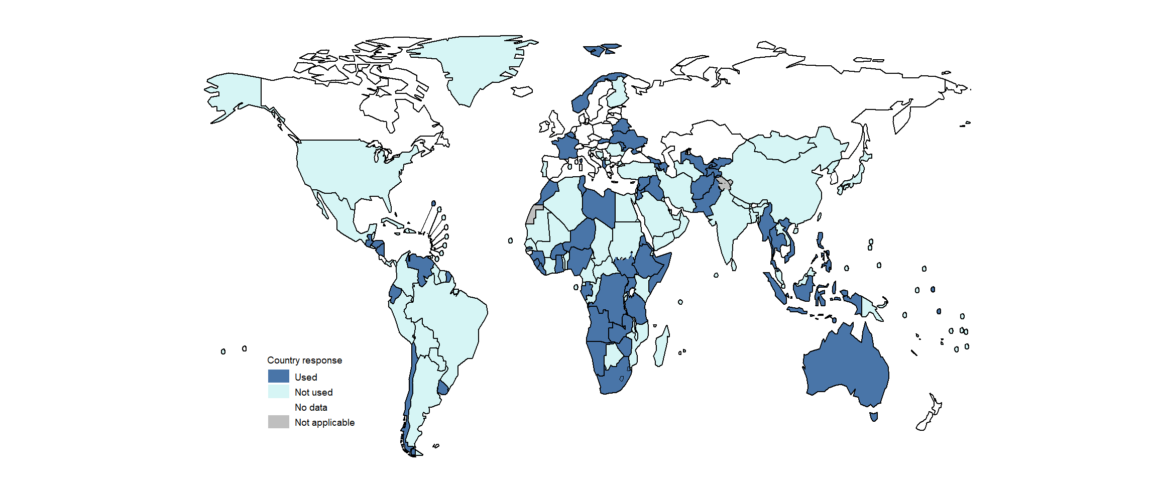 Fig. 3.4.6 Countries that used bedaquiline for the treatment of MDR/XDR-TB as part of expanded access, compassionate use or under normal programmatic conditions by the end of 2020