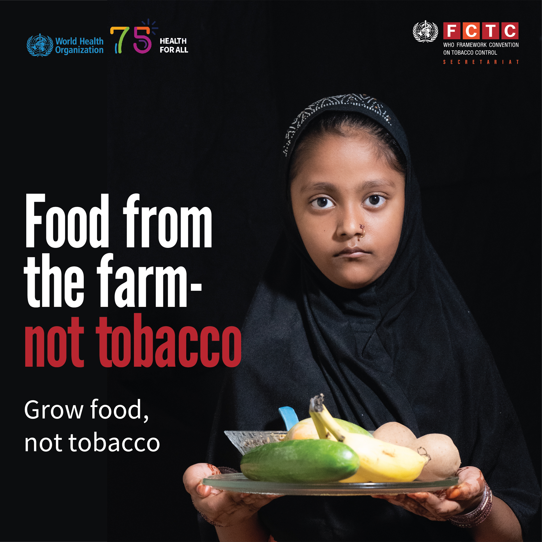 This campaign encourages governments to end tobacco growing subsidies and use the savings to support farmers to switch to more sustainable crops that improve food security and nutrition.