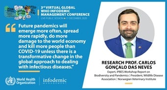 Two panel discussions will be held, the first of which, is to focus on the role scientists play in presenting research findings and how that can inadvertently contribute to the infodemic and country experience of how the scientific community can contribute to the managing of the infodemic. The second, will aim to discuss and summarize challenges and solutions to enhance the quality of research published, how it is curated, and how it can be presented to the general public to improve public understanding of research and how it applies to their lives. Panellists will engage scientists, journal editors, prominent public health advocates, and others across society to address the challenge of communicating high-quality science in a way that people can understand and what it means for how to respond to the COVID-19 pandemic.